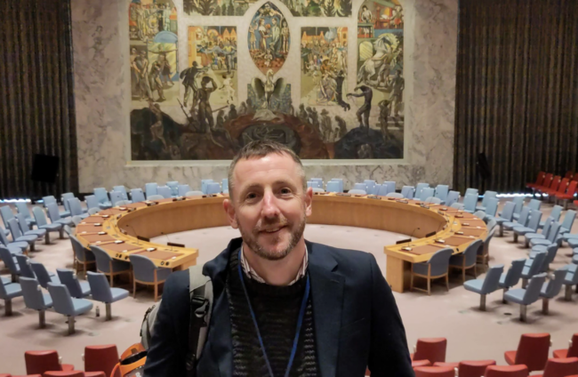 Thar nais sa cheannaras, Angus Lambkin i seomra chomhthionóil na Náisiúin Aontaithe i Nua EabhracSource: Angus Lambkin