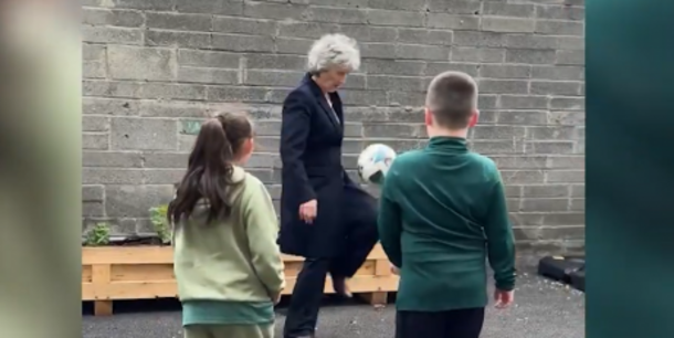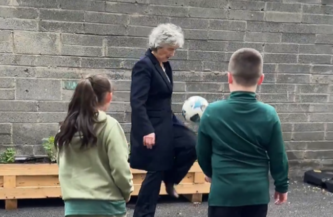 Catherine Connolly pictured doing keepie-uppies. Catherine Connolly/X