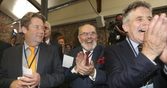Senators Darragh O'Brien, David Norris and Sean Barrett celebrate the referendum result Photocall Ireland
