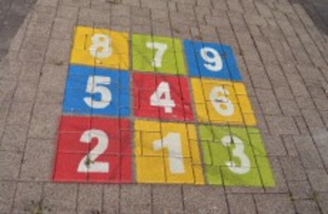 Children's playground: Colorful hopscotch with numbers via Shutterstock