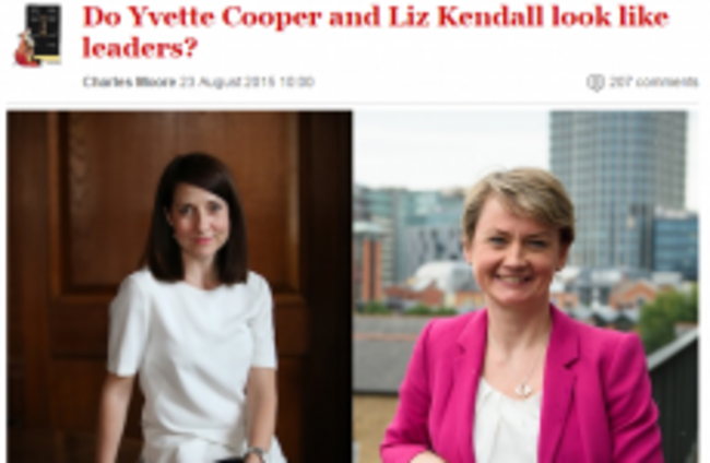 The article, written by journalist Charles Moore for The Spectator, is entitled: ‘Do Yvette Cooper and Liz Kendal look like leaders?’.