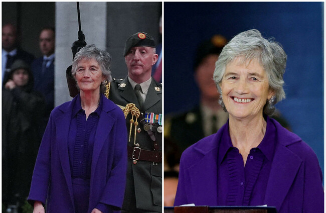 CATHERINE CONNOLLY WORE an all-purple outfit to her inauguration today, where she officially became the 10th President of Ireland.