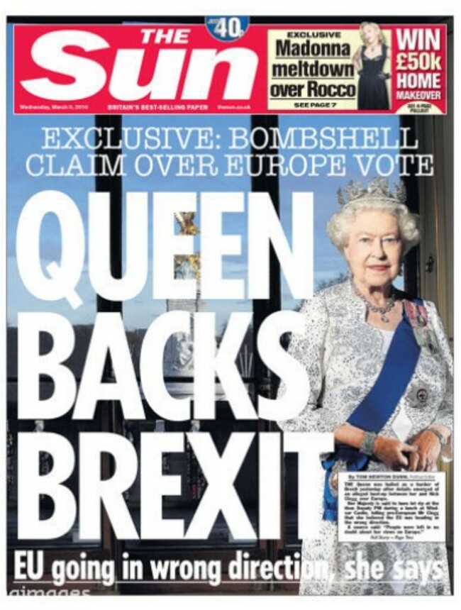 The Sun defends "significantly misleading" front page about Queen backing Brexit