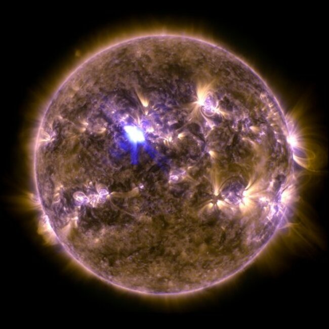 NASA’s Solar Dynamics Observatory captured this image of an M6.5 class flare at 8:16 EDT on April 11, 2013. This image shows a combination of light in wavelengths of 131 and 171 Angstroms. (Credit: NASA/SDO)