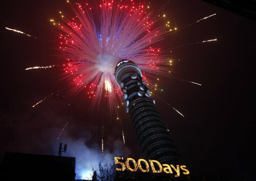 Fireworks mark the beginning of the 500-day countdown to the Olympic Games at the BT Tower in London. Pic: Sean Dempsey/PA Images.