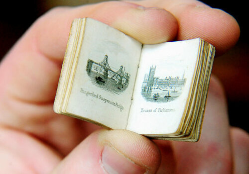 A miniature 19th century Bijou picture book of London, one of a number of tiny books up for auction in England. Pic: Rui Vieira/PA Images.