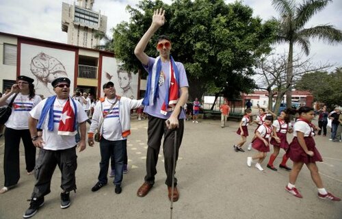 Turkish man Sultan Kosen, 28, has been confirmed by the Guinness World Record Association as the world's tallest man. (AP Photo/Javier Galeano)
