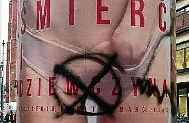 Posters for the play have been defaced... This image was shared by the theatre on Facebook. teatrpolski.wroc.pl