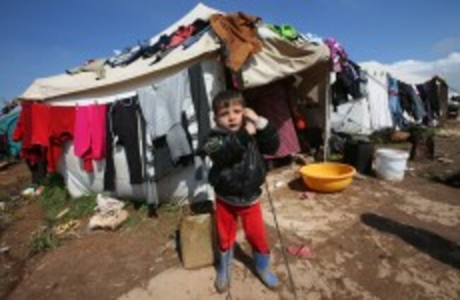 A Syrian refugee boy stands outside his tent at Atmeh refugee camp, in the northern Syrian province of Idlib. Hussein Malla/AP/Press Association Images