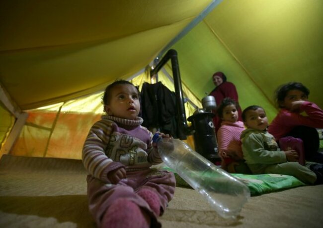 Syrian refugee children who fled their houses with their parents in Syria to Lebanon sit inside a tent, at a temporary refugee camp in the eastern Lebanese town of Marj. (Image: Hussein Malla/AP/Press Association Images)