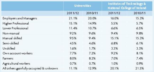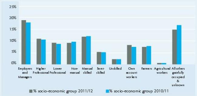 (Socio-Economic group of respondents – HEA Higher Education Key Facts and Figures 2011/12)