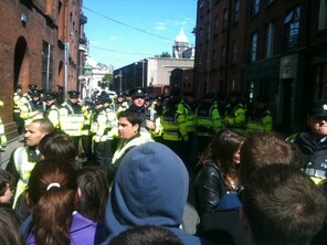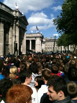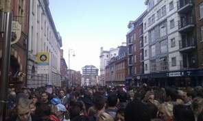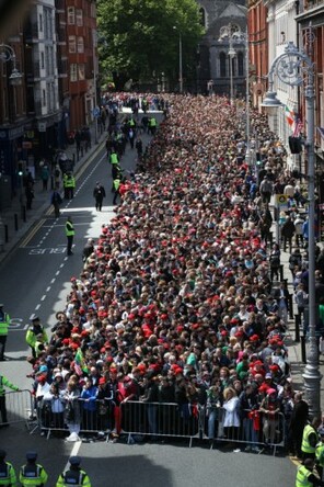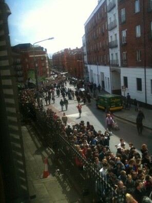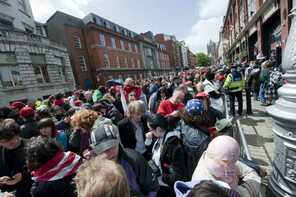 Entrances to the restricted section of Dame Street and College Green have opened and are located on Parliament Street and the Christchurch end of Dame Street, near Lord Edward Street. A small group of people broke through barriers and rushed towards the security gates in order to skip the queue, but more gardaí arrived on the scene to control the queue.
