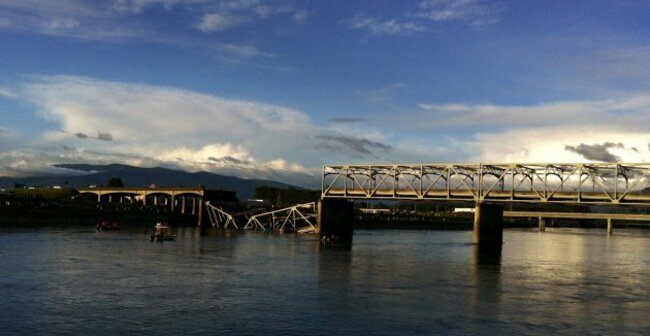 While the I-5 truck’s cargo suffered only minimal damage, it left chaos in its wake, with two vehicles catapulting off the edge of the broken bridge into the river below. Three people involved escaped with non-life threatening injuries.