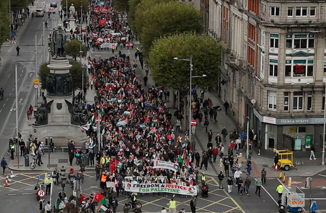 THOUSANDS OF PEOPLE took part in a demonstration yesterday in Dublin city centre in support of Palestine.