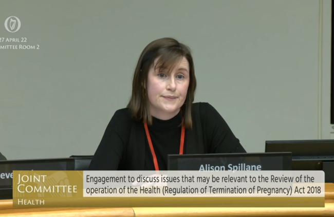 Alison Spillane, a senior policy and research officer at the Irish Family Planning Association (IFPA), described to the Oireachtas Health Committee how the fear of prosecution “sits in the consultation room” between patient and doctor.