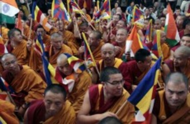 Exiled Tibetan Buddhist monks protesting Chinese rule of Tibet at a rally in India in April 2011. AP Photo/Ashwini Bhatia