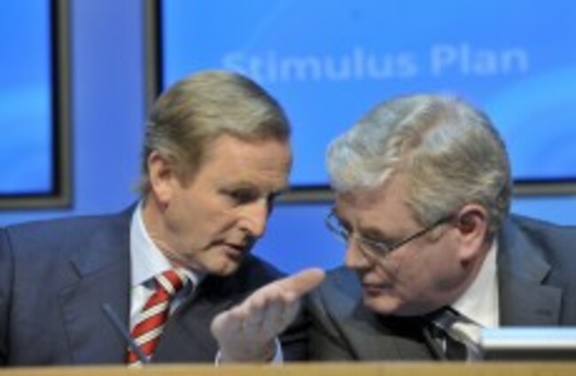 Taoiseach and Fine Gael leader Enda Kenny with Tanaiste and Minister for Foreign Affairs Eamon Gilmore at the Government's briefing on the Infrastructure Stimulus package Photocall Ireland