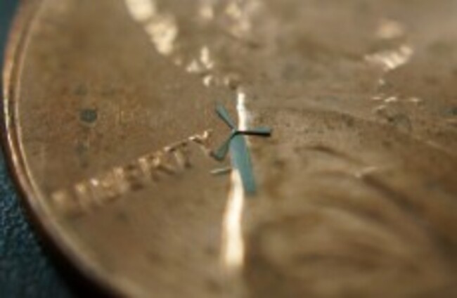 One of the micro-windmills resting on top of a US penny. University of Texas Arlington