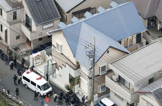 Police originally found two heads inside a cool box at the entrance to the apartment before making the grisly discovery of the other body parts, according to Jiji Press.