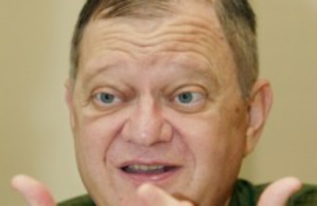 Tom Clancy, hawkish master of military thrillers, gestures during an interview. (File photo) Kathy Willens/AP/Press Association Images
