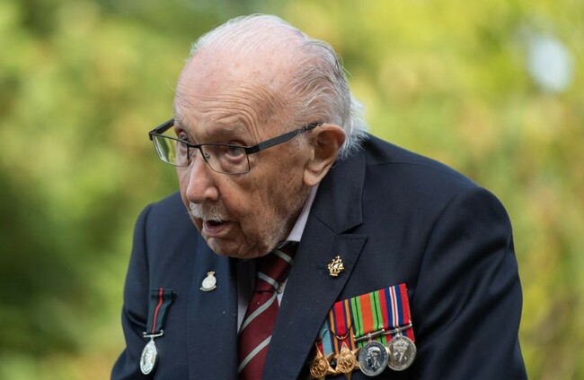 Moore’s fundraising efforts raised more than £32 million (over €36 million) for the NHS, walking 100 laps of his garden before his 100th birthday during the first lockdown in April.