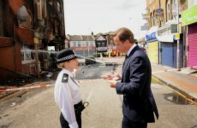 Prime Minister David Cameron talks to Acting Borough Commander Superintendent Jo Oakley in Croydon, south London, yesterday. Stefan Rousseau/PA Wire/Press Association Images