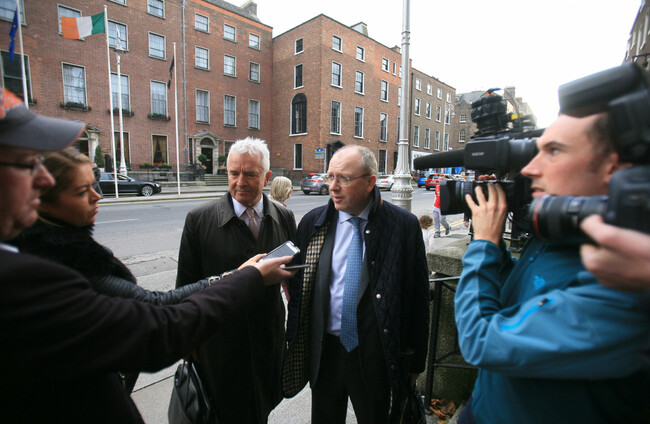 Group CEO of Permanent TSB Jeremy Masding (R) talking to the media while arriving the Department of Finance after being called in over the tracker mortgage issues. Leah Farrell/RollingNews.ie