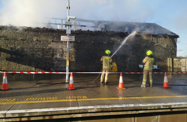 IRISH RAIL TRAINS are currently not stopping at Portarlington Station due to a fire in a nearby building.