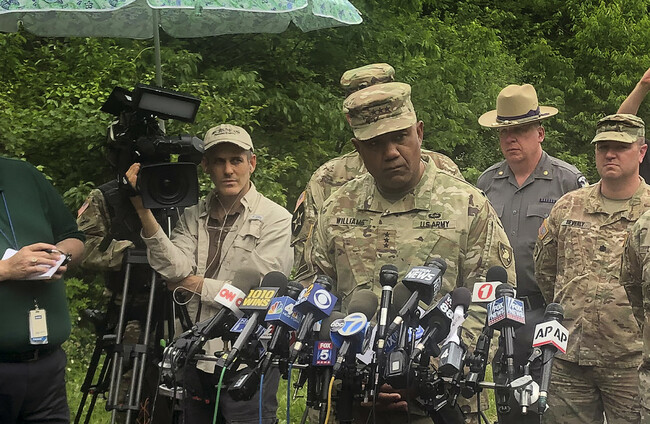 Video from media helicopters showed the vehicle completely overturned in thick forest near the West Point campus.