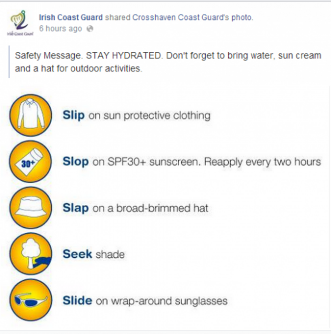 Today Met Éireann issued a weather warning, forecasting temperatures of up to 28 degrees in some places and the Irish Coast Guard shared a safety message urging people to take care in the heat and, in particular, to stay hydrated.