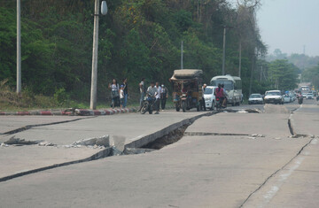 The 7.7-magnitude earthquake left roads, buildings and bridges destroyed across Myanmar. Alamy Stock Photo