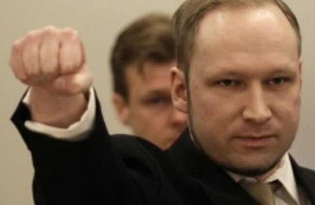 Breivik gestures as he arrives at the courtroom. Frank Augstein/AP/Press Association Images