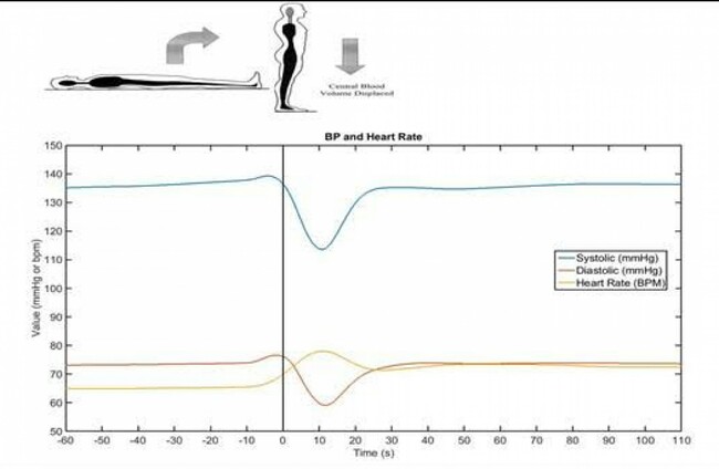 Participants in the study rested in a lying position for 10 minutes during which time their heart rate and blood pressure were monitored. Participants were then asked to rise from the lying position to a standing position.