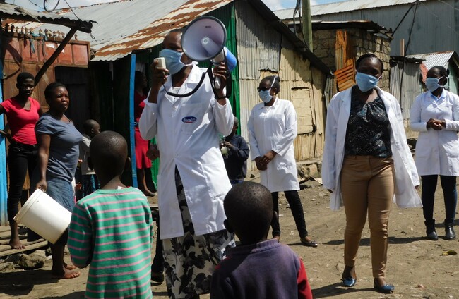 Clinical health care workers supported by Trócaire are sensitising the community on Covid-19. Trócaire