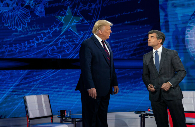 Donald Trump pictured with ABC News anchor George Stephanopoulos 15 September 2020. Alamy
