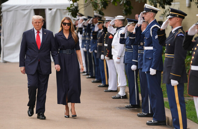 US PRESIDENT DONALD Trump stood alongside first lady Melania Trump at the Pentagon this morning to mark the 24th anniversary of the September 11 attacks, honoring the nearly 3,000 people killed.