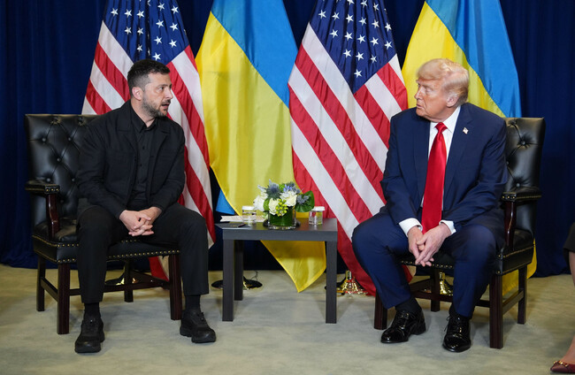 US President Donald Trump meets with Ukrainian President Volodymyr Zelenskyy during the United Nations General Assembly. AP Photo/Evan Vucci