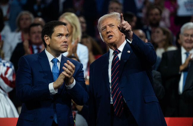Rubio (left) and Donald Trump (right) at the Republican National Convention earlier this year. Alamy Stock Photo