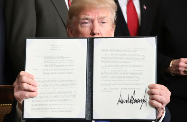Saying it would be the “first of many” trade actions, Trump signed the order that also could result in restrictions on Chinese investment in the US.
