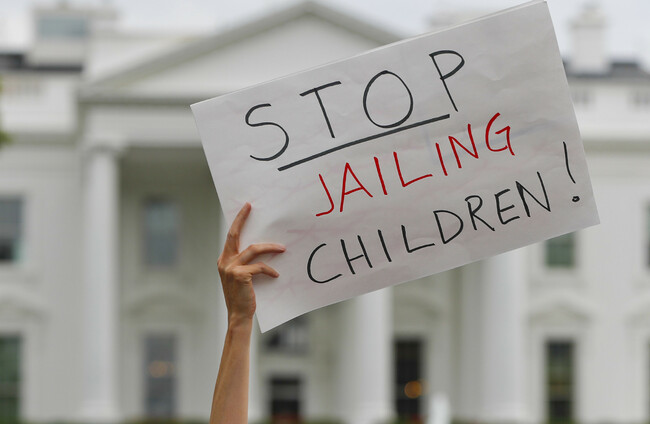 A demonstrator hold up a sign during a rally opposed to President Trump's family separation policy. Pablo Martinez Monsivais
