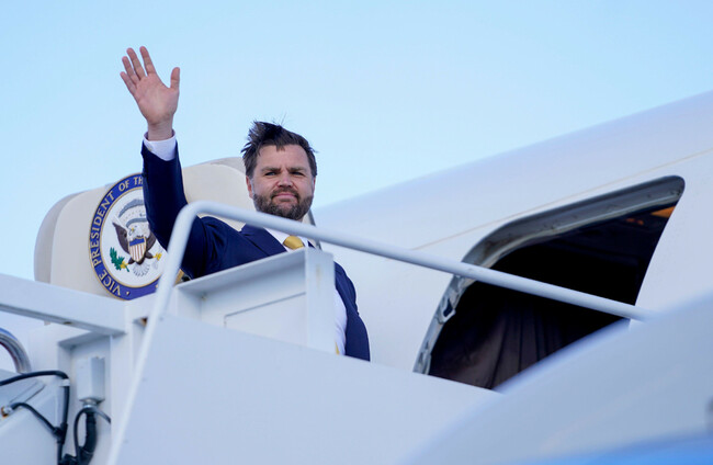 JD Vance boards Air Force Two en route to Israel. Alamy Stock Photo