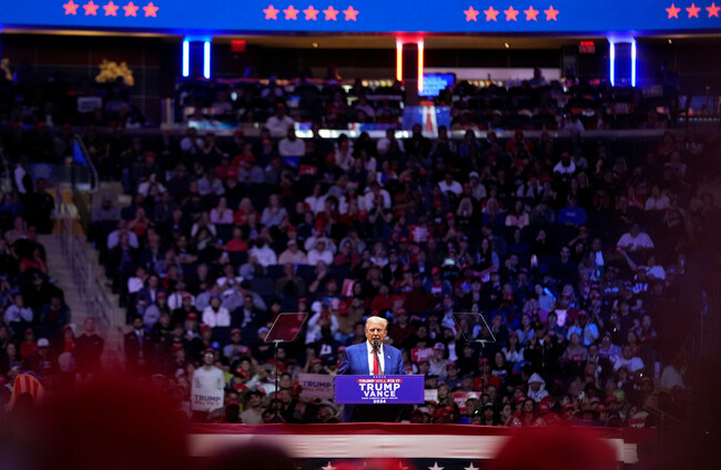 Republican presidential nominee former President Donald Trump speaks at a campaign rally at Madison Square Garden Alamy Stock Photo