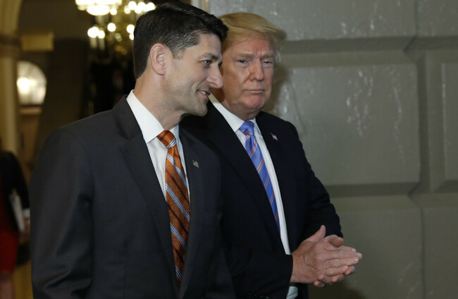 Trump with senior Republican Paul Ryan yesterday Yuri Gripas UPI/PA Images