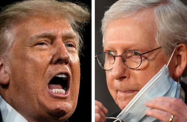A day after blistering Mitch McConnell, the Senate’s top Republican, as a “dour, sullen and unsmiling political hack” Trump repeated the baseless claim yesterday that he was the rightful winner of the November election.