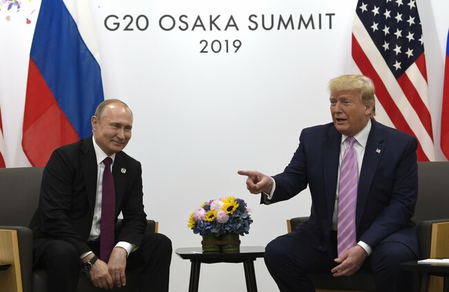 Their meeting in Japan was the first time the two sat together publicly since their summit in Helsinki nearly a year ago in which Trump did not admonish Putin over election interference and did not side with US intelligence services over his Russian counterpart.