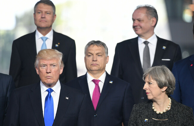 President Donald Trump and Prime Minister Theresa May (front right) during a NATO summit in Brussels last year. PA Wire/PA Images