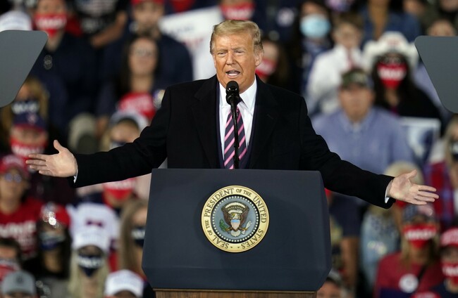 US President Donald Trump speaking at a campaign rally yesterday Keith Srakocic via PA Images