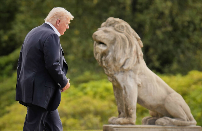 Trump pictured before leaving his golf course in Scotland today Jacquelyn Martin/AP/Alamy