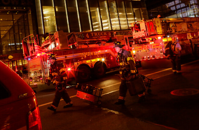 First responders assess the scene of a fire at Trump Tower. Eduardo Munoz Alvarez