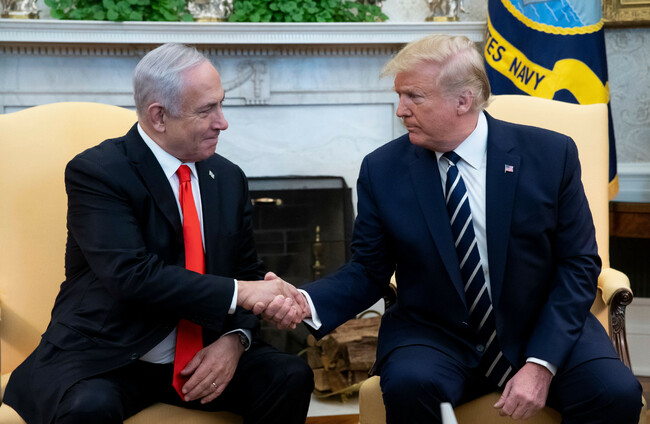 Donald Trump and Benjamin Netanyahu in the Oval Office in January 2020. Alamy Stock Photo